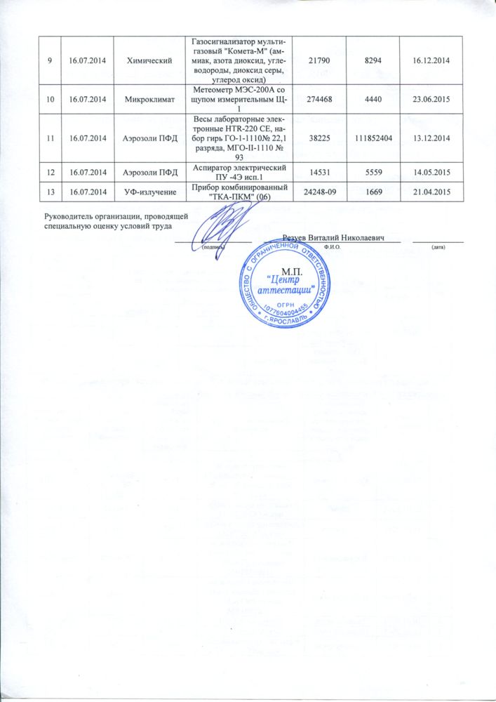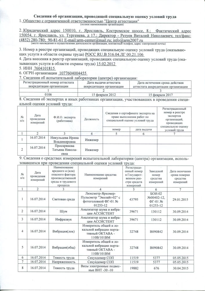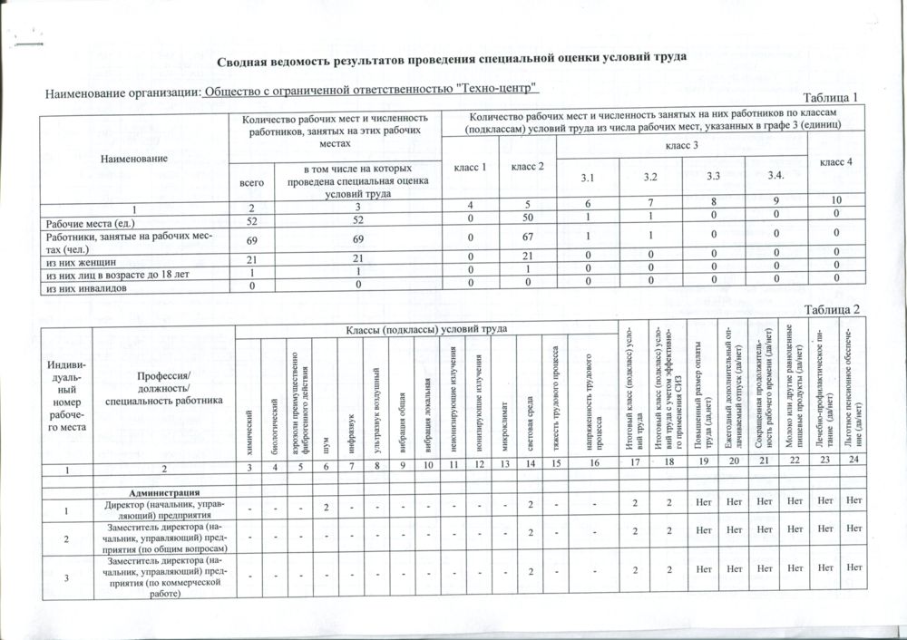 Комиссией центра аттестации проведена специальная оценка условий труда - условия труда соответствуют нормам.