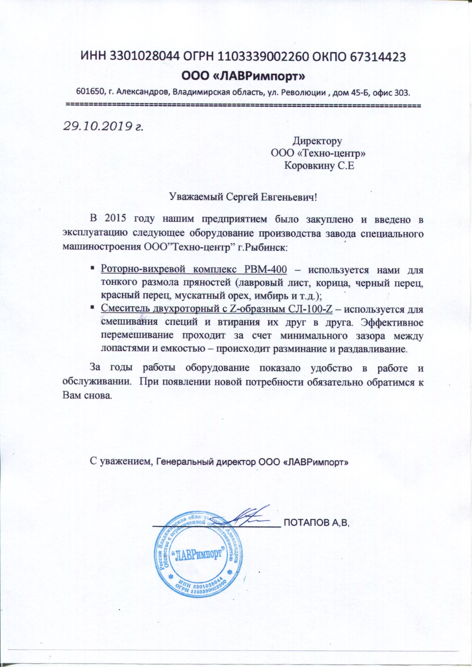 С уважением, генеральный директор ООО "ЛАВРимпорт"