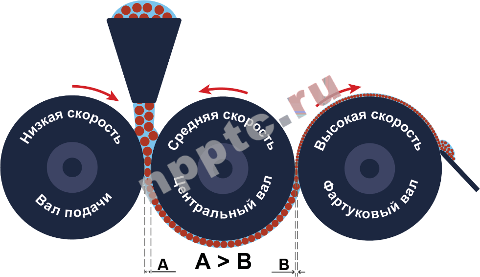 - Обеспечивается высокая сила сдвига и сжатия при прохождении материала в зазор между вращающимися валами (чем меньше зазор, тем выше сила сжатия).