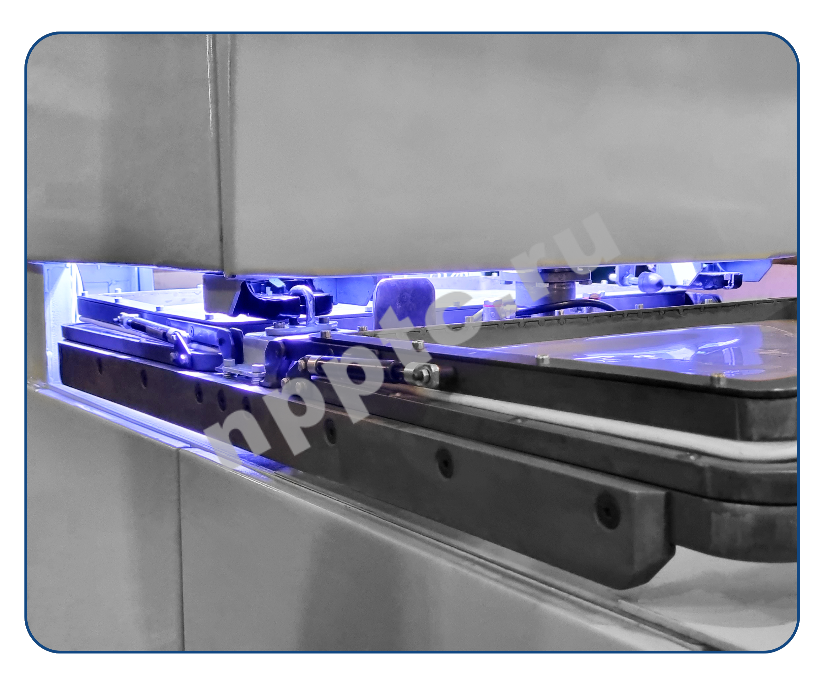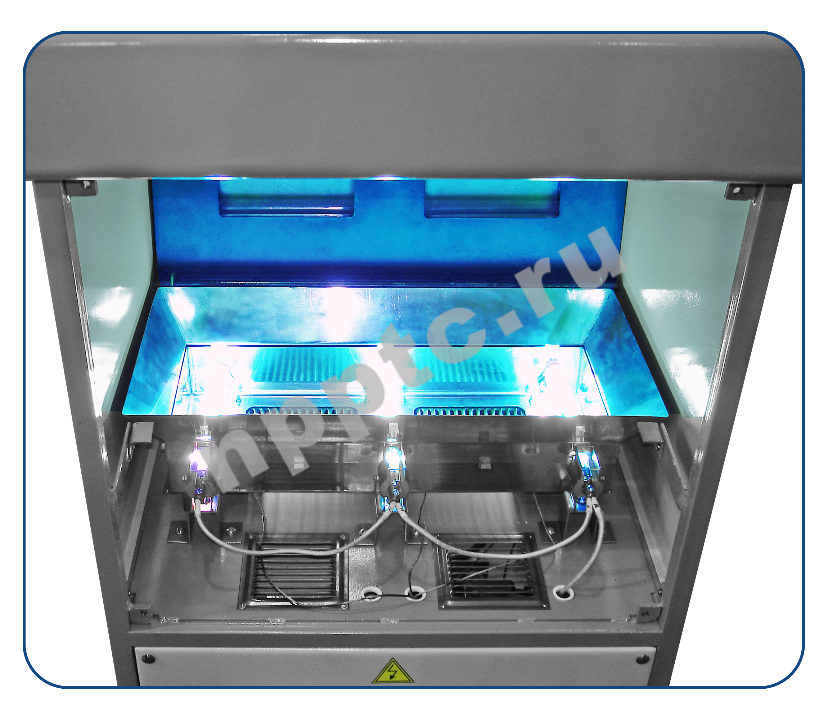 - Лампы расположены вместе со специальными отражателями сверху и снизу камеры экспонирования и обеспечивают высокую равномерность излучения по всей площади рамы.